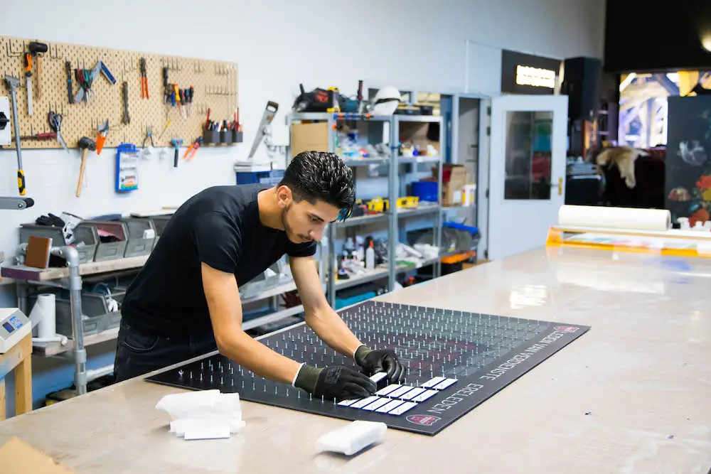 Before Studio New Media, Tristan and his wife ran another wholesale business in corporate gifts, business clothing and personal protective clothing. "We had a daughter and therefore had to quit the business. Now we can focus fully on Studio NewMedia and our daughter," Tristan says. "Studio NewMedia is actually a lot of designing and a lot of printing. We print a lot of square footage a year," Tristan laughs. "We have big projects like covering walls, floors and ceilings, as well as making business cards and logos. Sometimes a potential customer comes in for a business card, for example, and then leaves with a full quote for multiple advertising media or services. Often even with signature for the job already."